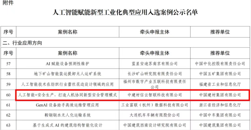 ? 2024年入選《人工智能賦能新型工業(yè)化典型應(yīng)用入選案例公示名單》