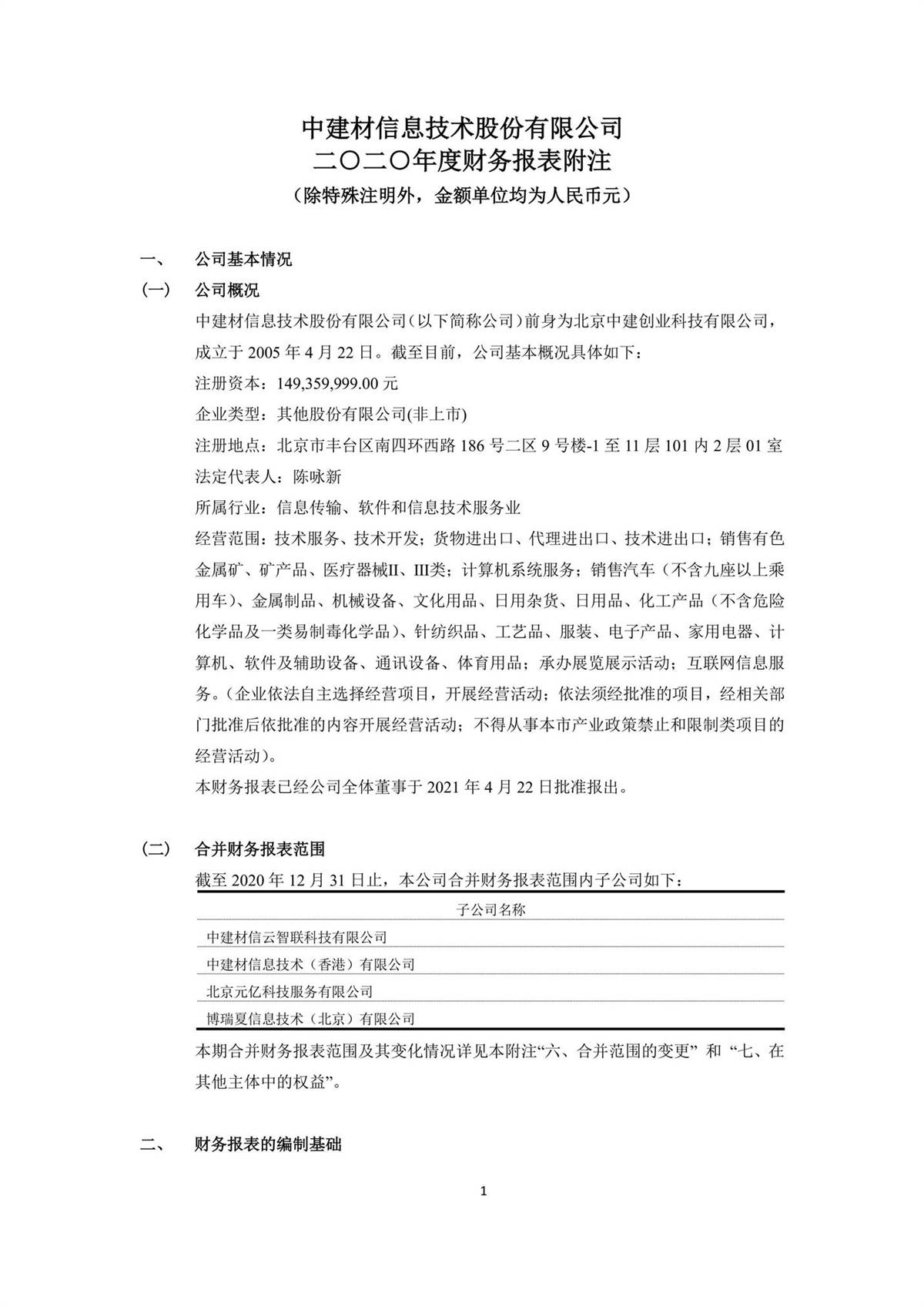 中建信息2020年年度報告