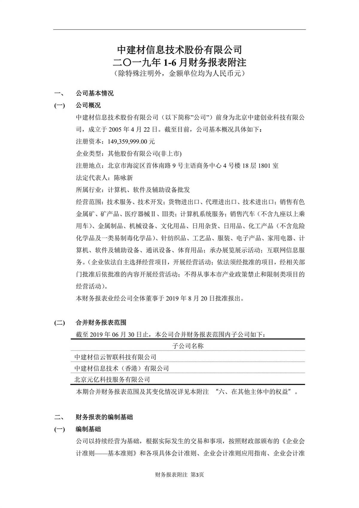中建信息2019年半年度報告