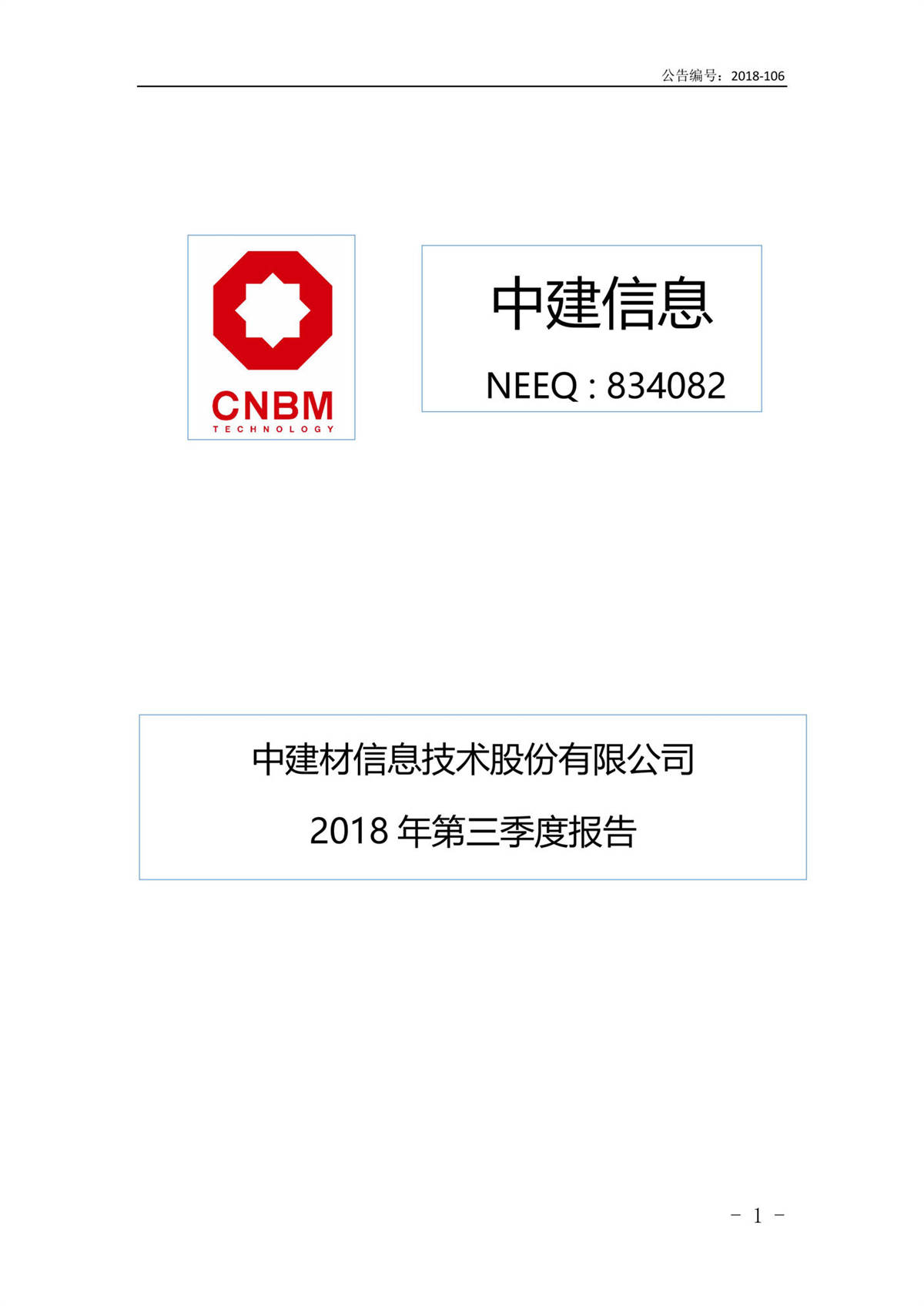 中建信息2018年第三季度報告